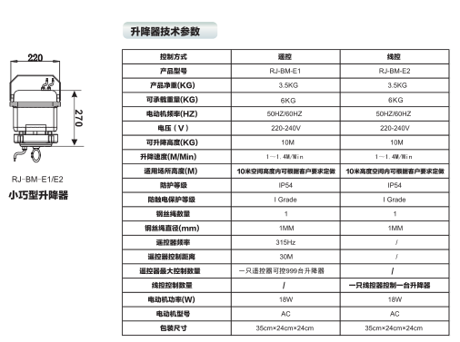 燈具升降器/遙控升降燈RJ-BM-E1 3-6kg 12m