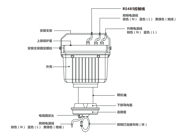 (2)就地控制面板與 LED 升降式燈具之間采用 2*0.75mm
